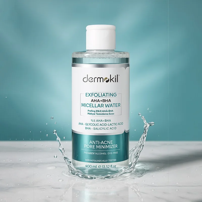 يجمع ماء ميسيلار AHA + BHA المقشر من Dermokil بين قوة التنظيف العميق ومفعول التقشير اللطيف. إنه منتج 2 في 1 يحل محل مزيل المكياج والغسول والتونر، ويعمل على مكافحة حب الشباب وتصغير المسام.