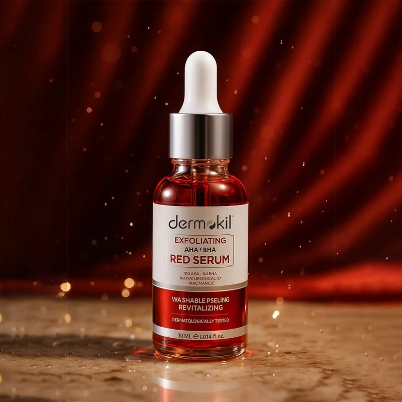 جربي قوة التقشير الأسبوعي المكثف في المنزل مع سيروم التقشير الأحمر القابل للغسل (Washable Peeling Red Serum) من Dermokil. هذا السيروم مصمم لتنشيط البشرة الباهتة وتوحيد لونها، ليمنحكِ بشرة مشرقة وناعمة كالأطفال.