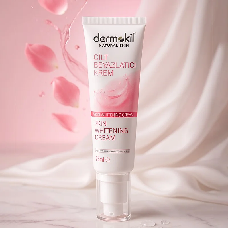 احصلي على لون بشرة موحد وإشراقة طبيعية مع كريم تفتيح البشرة (Skin Whitening Cream) من مجموعة Dermokil Natural Skin. هذا الكريم هو الحل الأمثل لمكافحة التصبغات، البقع الداكنة، وآثار التعرض للشمس.