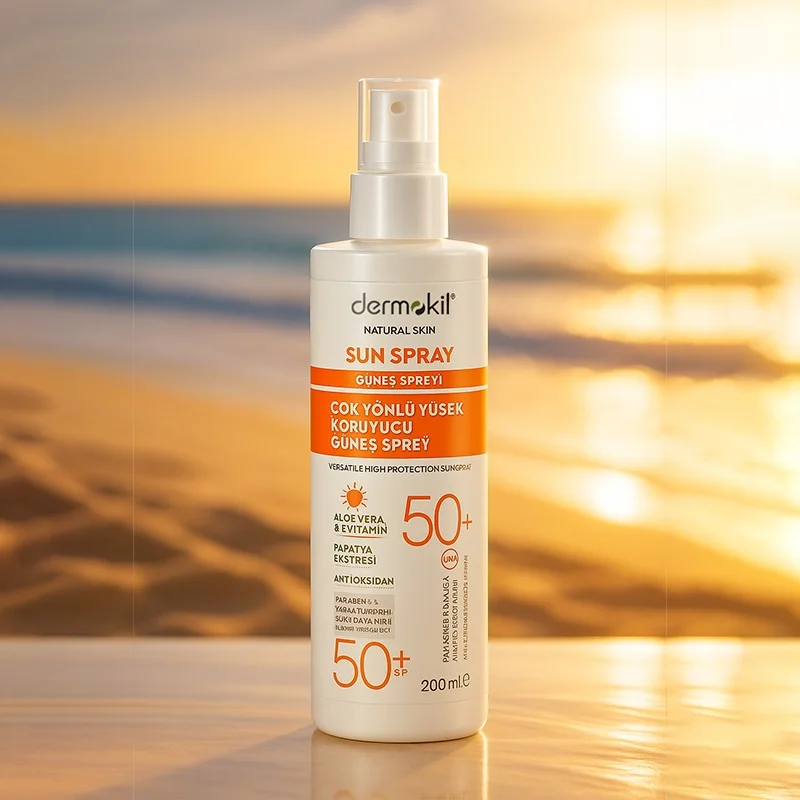 استمتعي بأيامك المشمسة دون قلق مع سبراي واقي الشمس عالي الحماية SPF 50+ من مجموعة Dermokil Natural Skin Care. هذا السبراي خفيف ومنعش، ويوفر حماية قوية وواسعة النطاق لجميع أفراد العائلة.